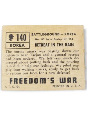 1950 Topps Freedom War Card #140 Tan Back Retreat in the Rain Battleground Korea