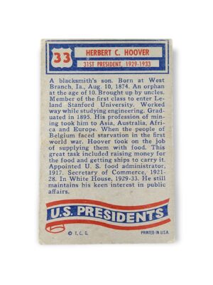 1956 Topps U.S. Presidents #33 Herbert C. Hoover Non-Sport Trading Card