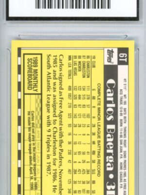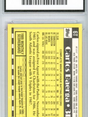 1990 Topps Traded Carlos Baerga Rookie #6T GMA Graded 10 Gem MT Baseball Card