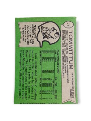 1978 Topps Football Tom Wittum Card #77 San Francisco 49ers Trading Card
