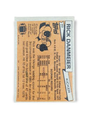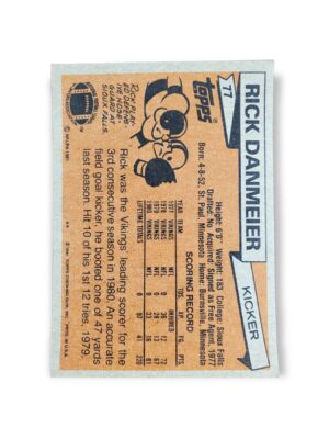 1981 Topps Football Rick Danmeier Card #77 Minnesota Vikings Trading Card