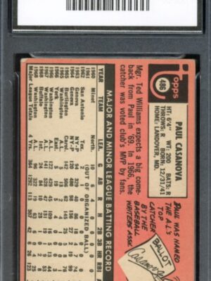 1969 Topps Paul Casanova #486 GMA Graded 3.5 VG+ Washington Senators Card