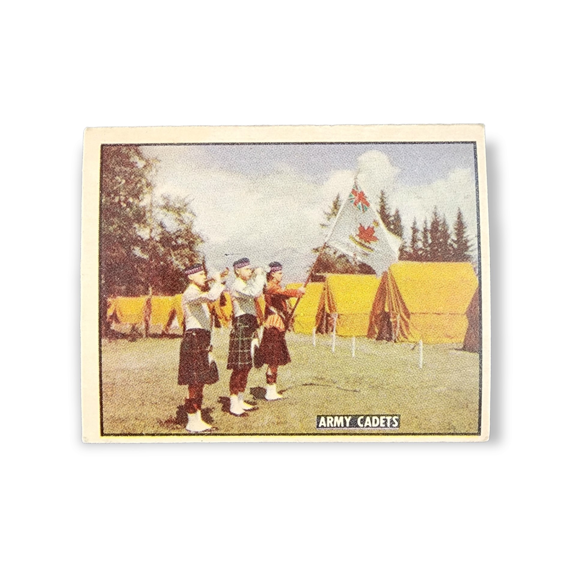 1950 Topps Freedom War #126 Army Cadets Canada at Arms Non-Sport Trading Card. This card has the tan color card back variation.