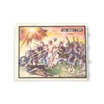 The 1950 Topps Freedom’s War set contains 203 cards featuring scenes from the Korean War. The set was issued in two-card panels, with each card measuring 2 1/16″ x 2 5/8″, and were perforated on one of the sides. The Freedom’s War cards feature airplanes, ships, weapons, medals, generals, enemies, and tanks. The front of the card has an actual photo or artwork representation while the back of the card has a short description and the card number. The 1950 Topps Freedom’s War cards were released in three print runs, over a period of two years, and can have either a grey or tan cardboard reverse.