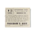 1950 Topps Freedom War #33 Murderous Fire Battleground Korea Non-Sport Trading Card. This card has the grey color card back variation.