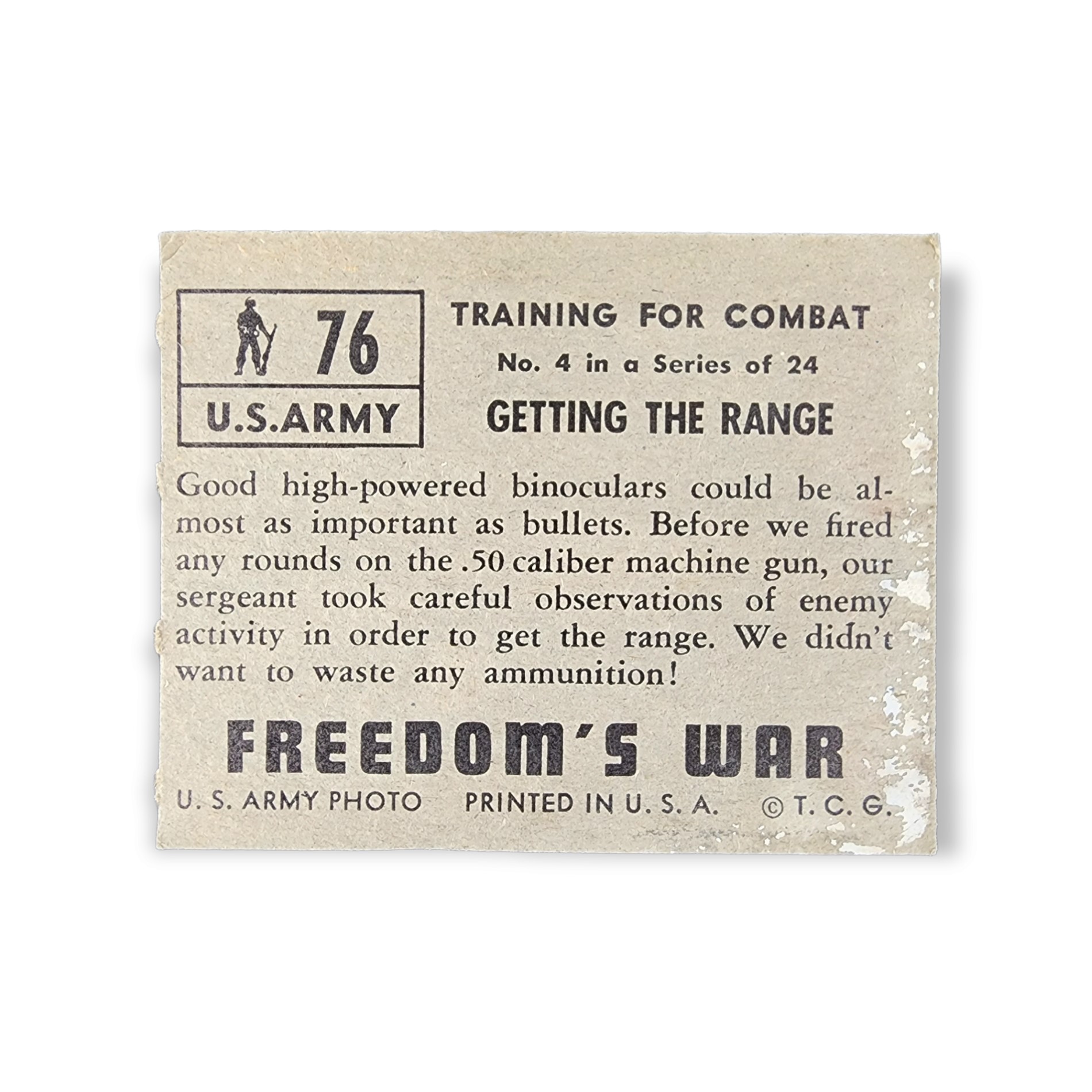 1950 Topps Freedom War #76 Getting the Range Training for Combat Non-Sport Trading Card. This card has the grey color card back variation.