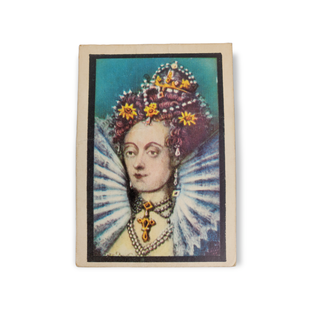 1959 Kane Products Ltd. Kings and Queens (Large) Trading Card #7 Elizabeth I. This card measures approximately 2 3/4″ X 3 7/8″.