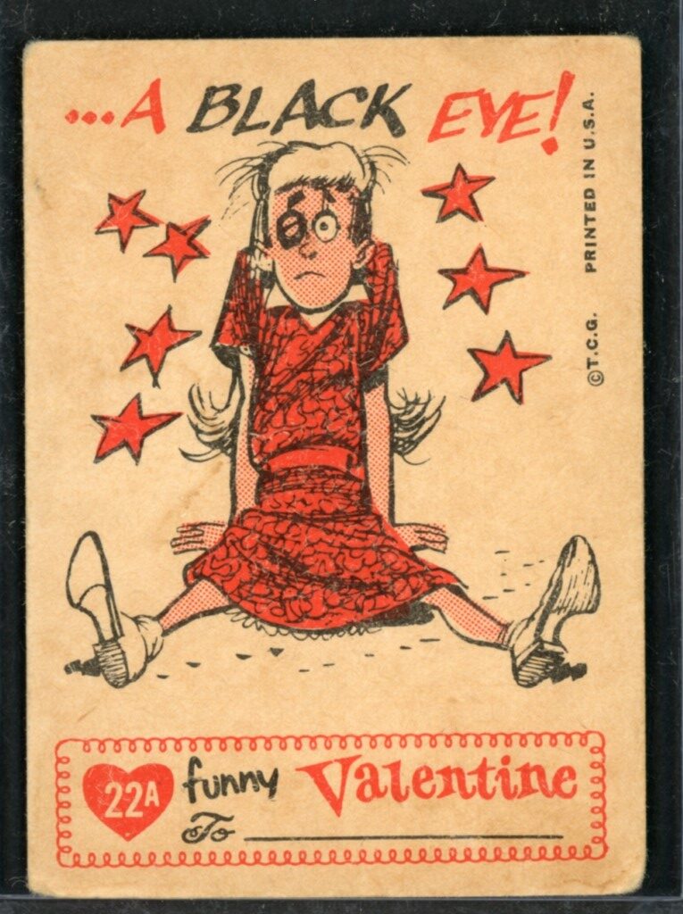 1960 Topps Funny Valentines A Series Trading Card #22A I’d like to give you something to remember me by – a black eye