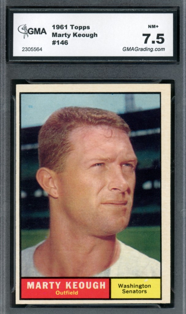 1961 Topps Marty Keough Washington Senators Baseball Card #146 – GMA Professional Graded 7.5 NM+