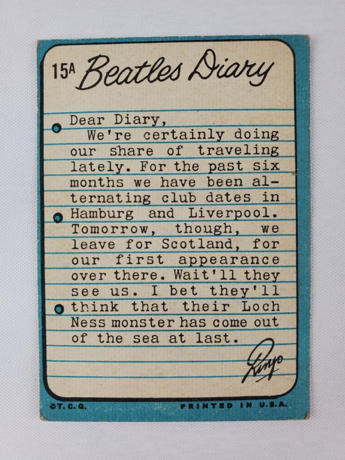1964 Topps Beatles Diary Trading Card #15A – Ringo Starr
