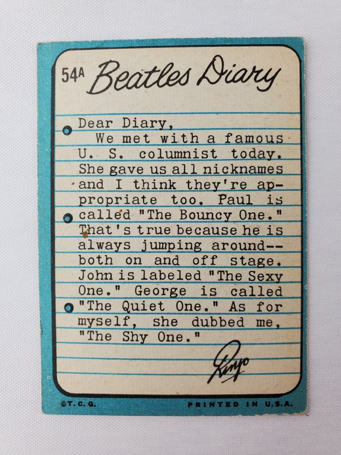 1964 Topps Beatles Diary Trading Card #54A – Ringo Starr