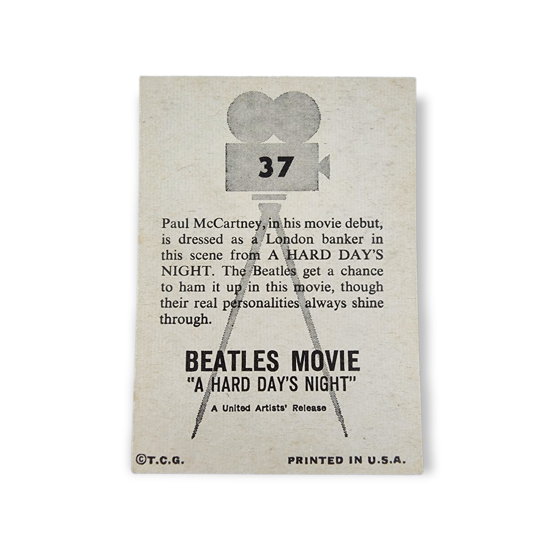1964 Topps Beatles Movie A Hard Day’s Night Trading Card #37 Paul McCartney, in his Movie Debut, is Dressed as a London Banker