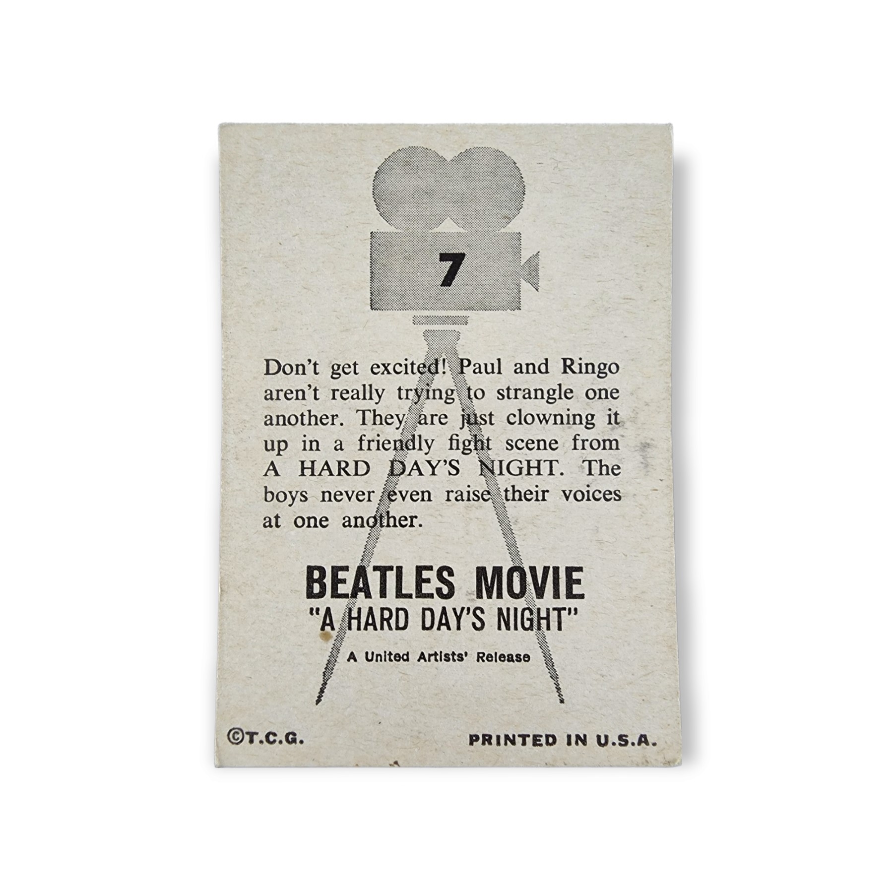 1964 Topps Beatles Movie A Hard Day’s Night #7 Don’t Get Excited Trading Card