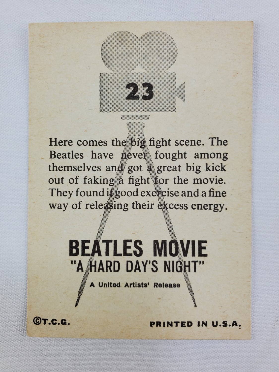 1964 Topps Beatles Movie A Hard Day’s Night Trading Card #23 Here Comes the Big Fight Scene