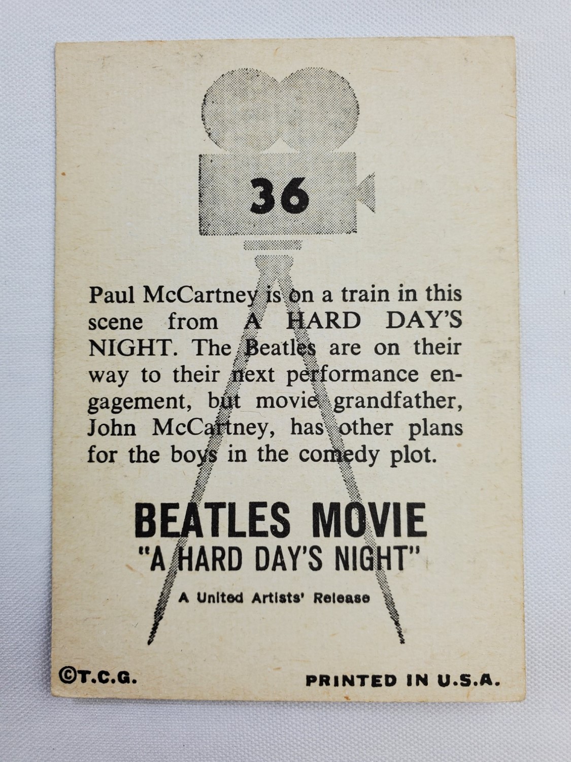 1964 Topps Beatles Movie A Hard Day’s Night Trading Card #36 Paul McCartney is on a Train in this Scene