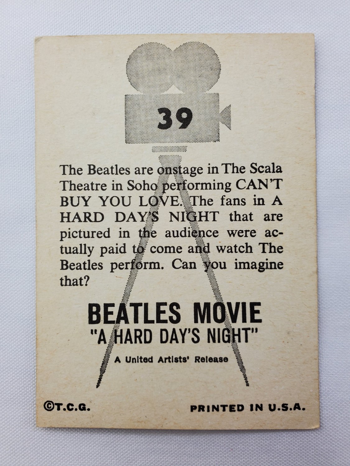 1964 Topps Beatles Movie A Hard Day’s Night Trading Card #39 The Beatles are Onstage in the Scala Theatre in Soho Performing Can’t Buy Me Love