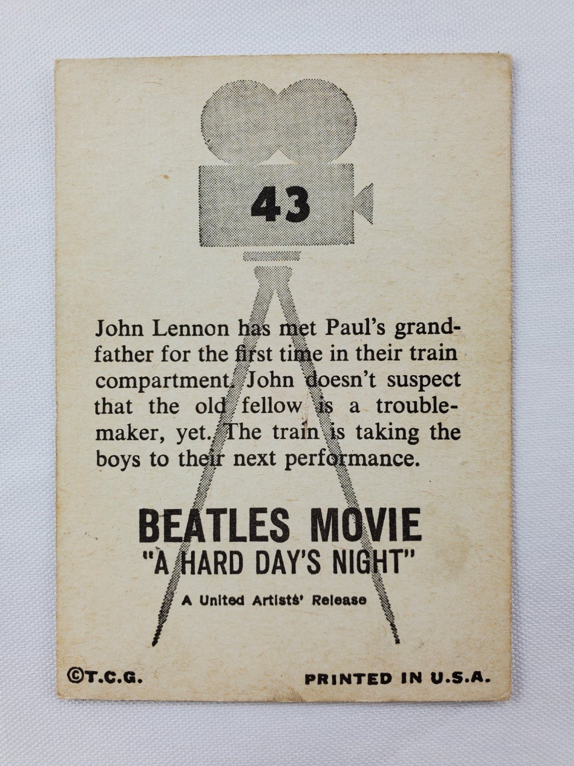 1964 Topps Beatles Movie A Hard Day’s Night Trading Card #43 John Lennon has met Paul’s Grandfather for the First Time in Their Train Compartment