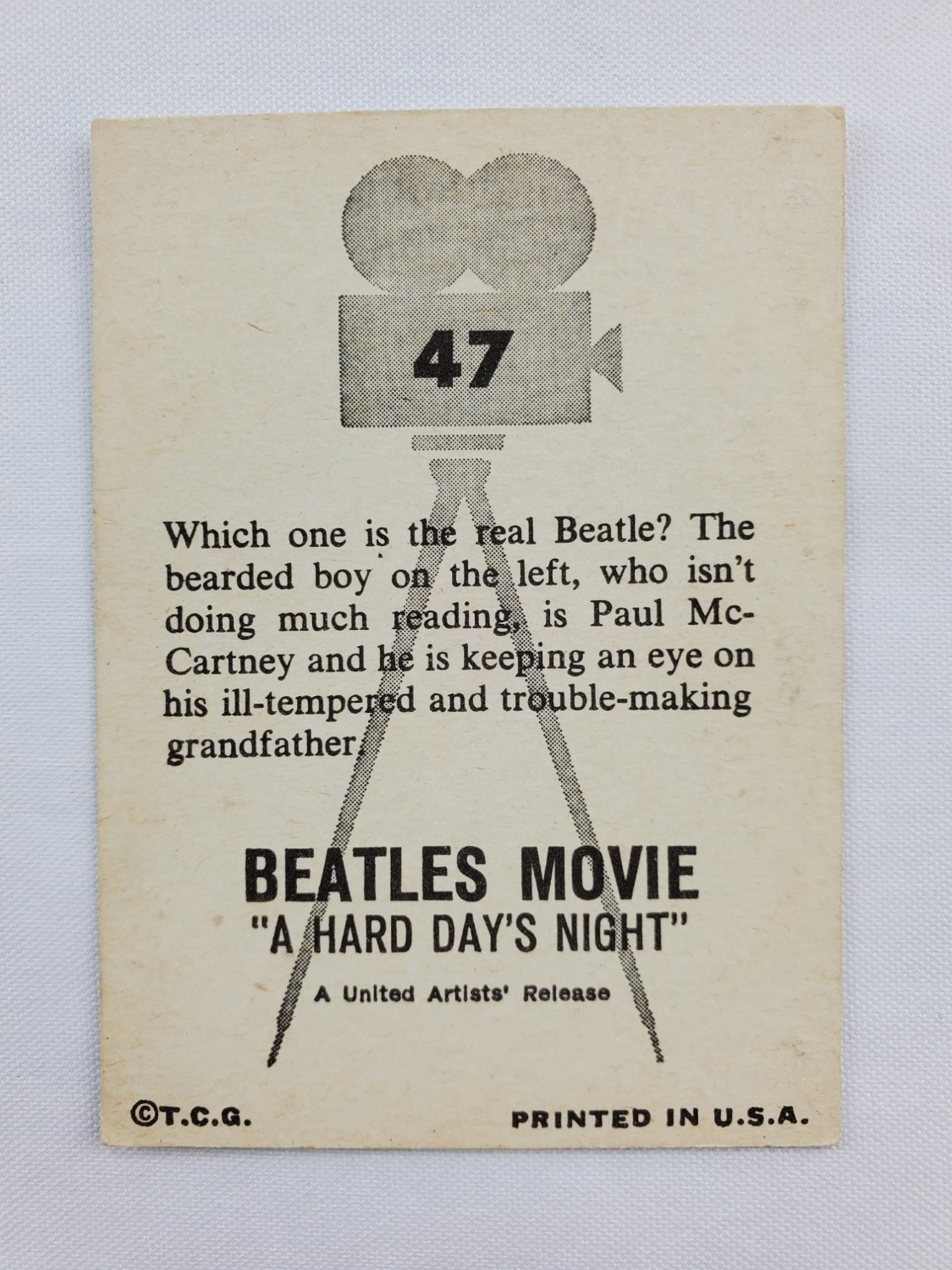 1964 Topps Beatles Movie A Hard Day’s Night Trading Card #47 Which one is the Real Beatle?