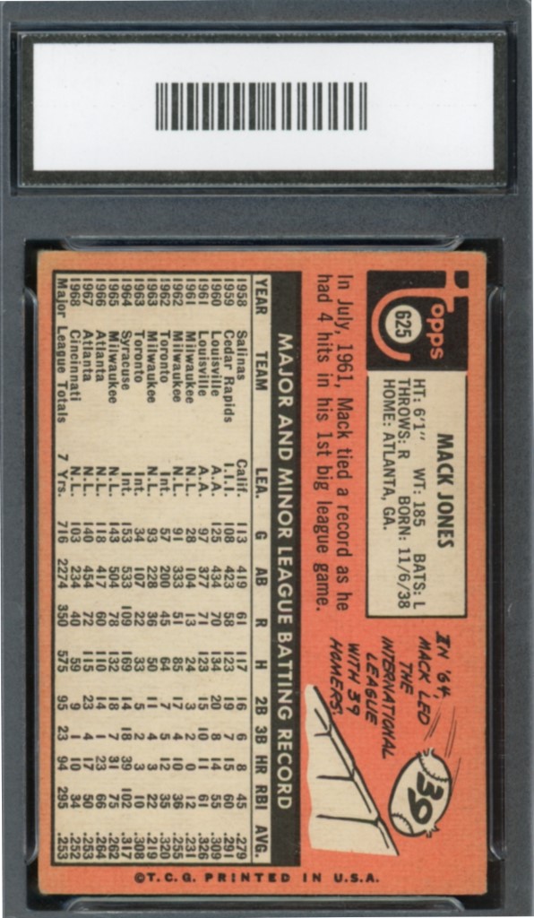 1969 Topps Mack Jones Montreal Expos Baseball Card #625 – GMA Professional Graded 4.5 VG-EX+