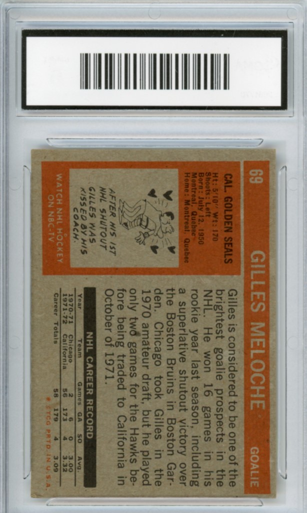 1972-73 Topps Gilles Meloche Hockey Card #69 – GMA Professional Graded 5 EX