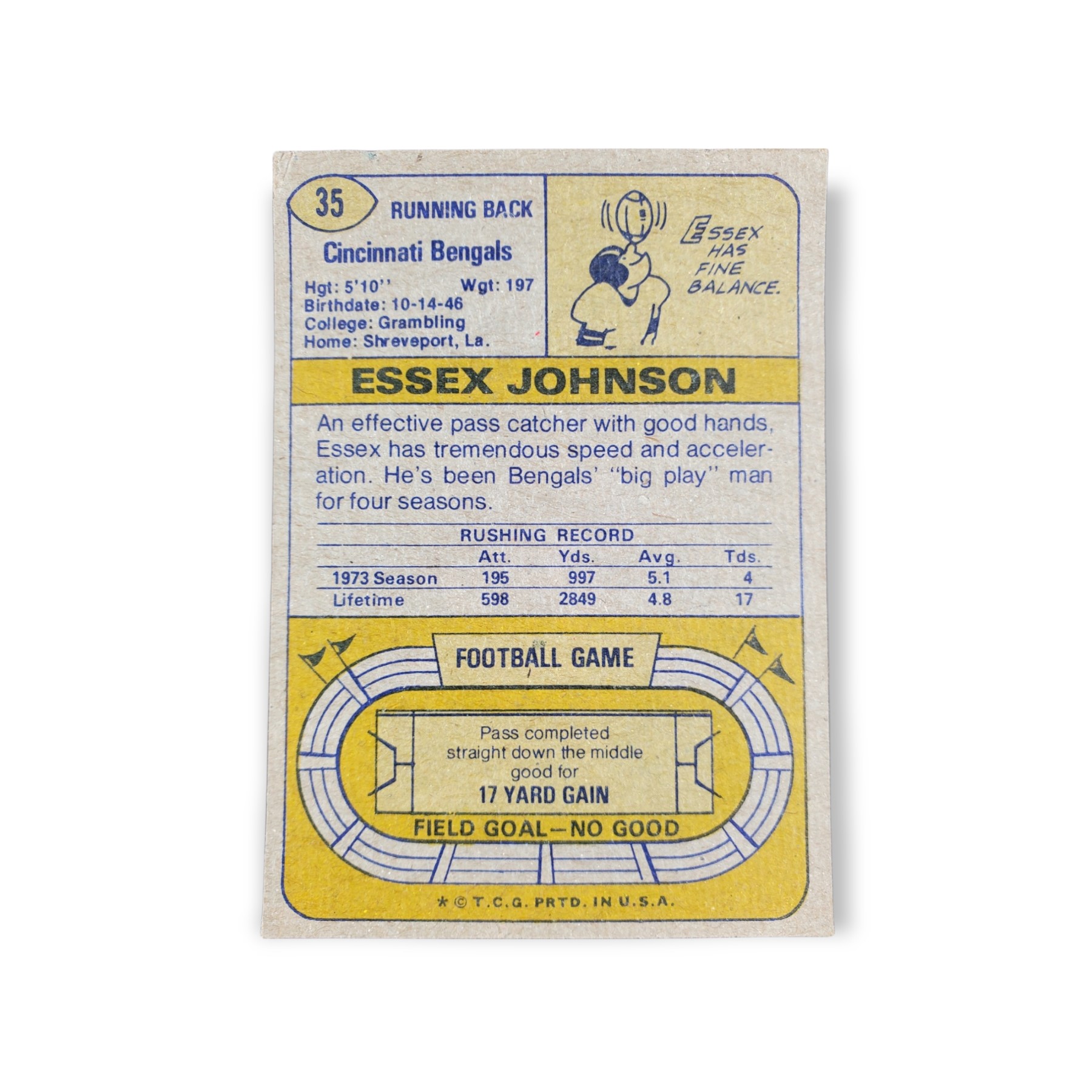 1974 Topps Football Essex Johnson Card #35 Cincinnati Bengals Trading Card