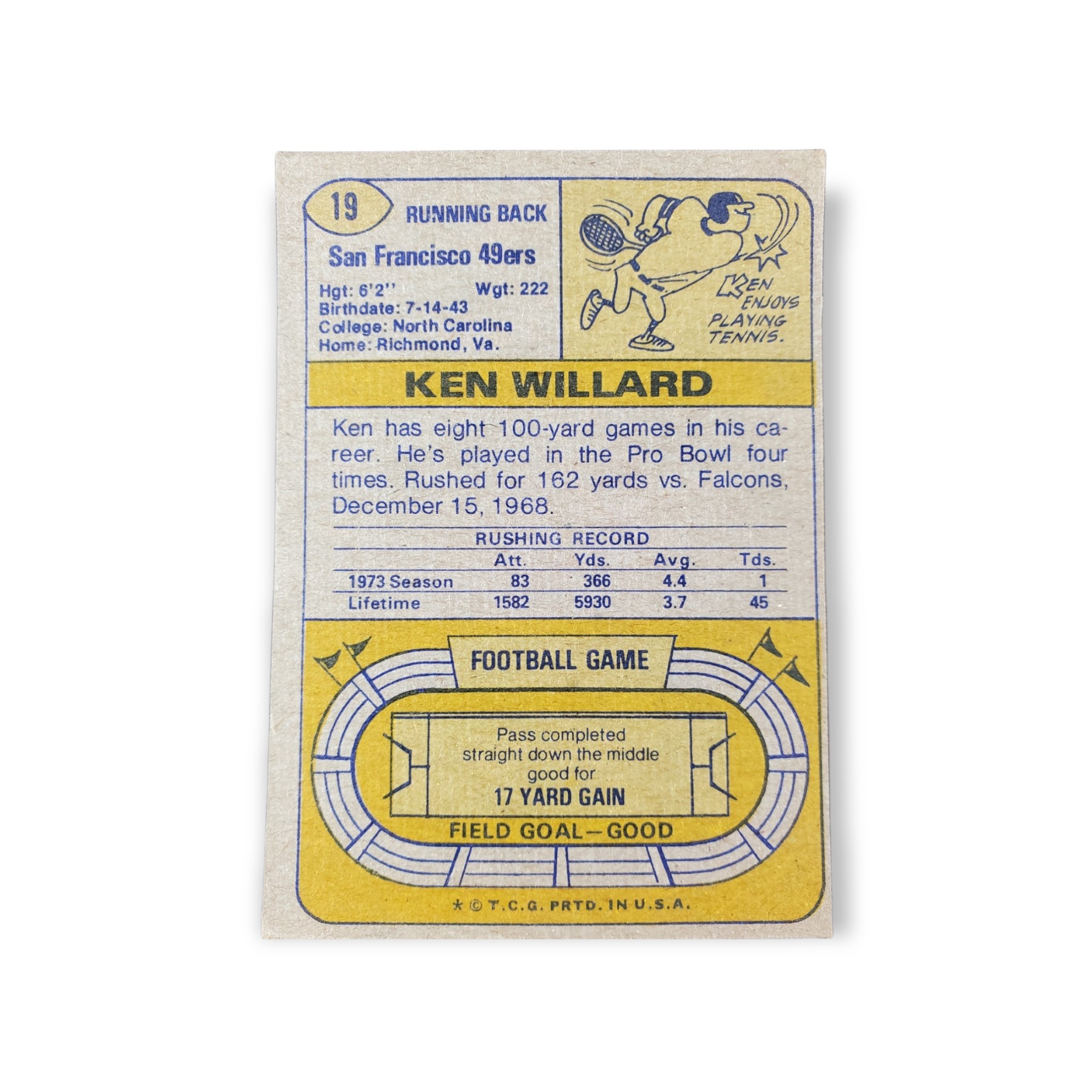 1974 Topps Football Ken Willard Card #19 San Francisco 49ers Trading Card