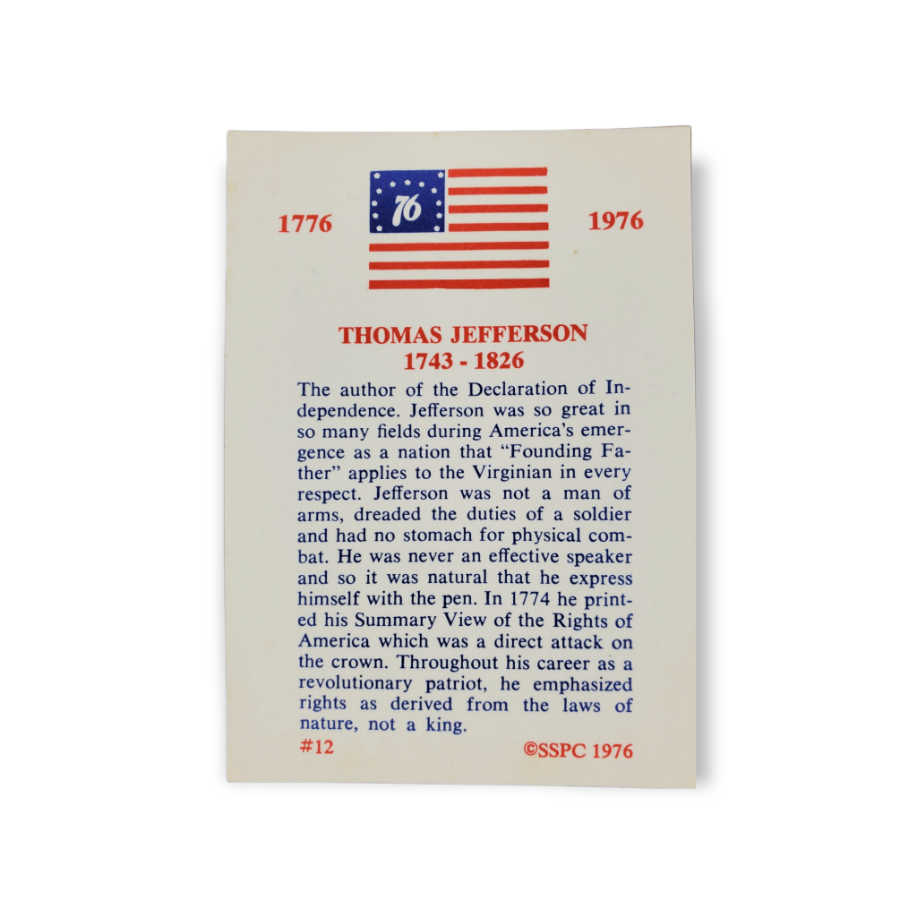 1976 SSPC 200 Years of Freedom Trading Card #12 Thomas Jefferson