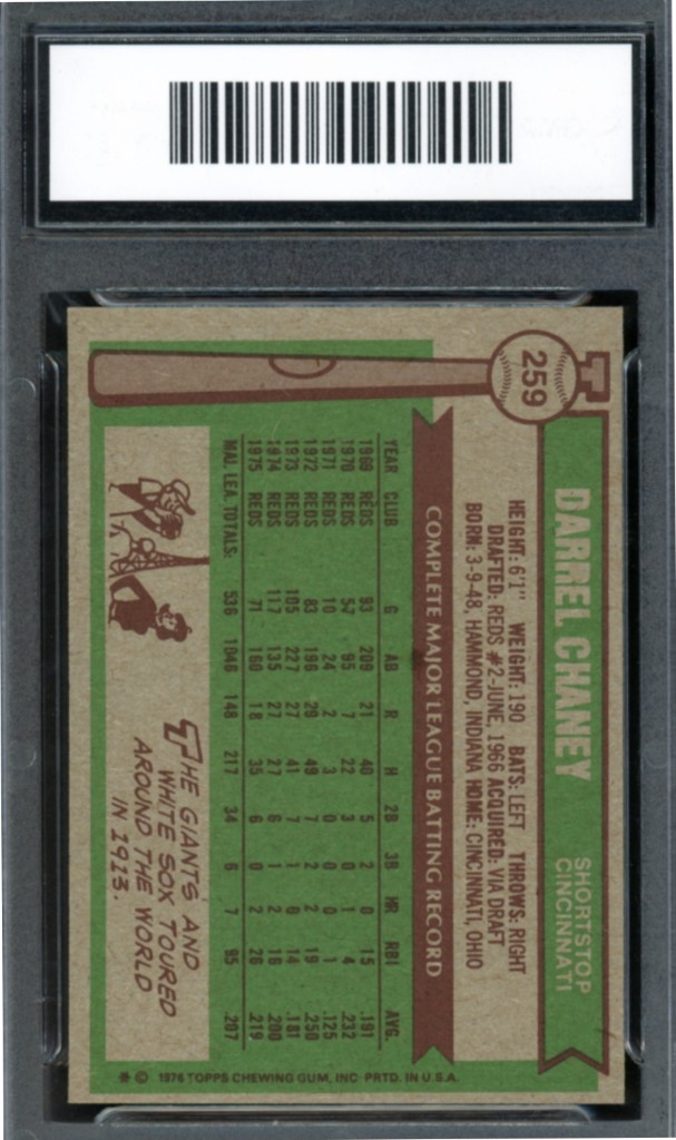 1976 Topps Darrel Chaney Cincinnati Reds Baseball Card #259 – GMA Professional Graded 8.5 NM-MT+