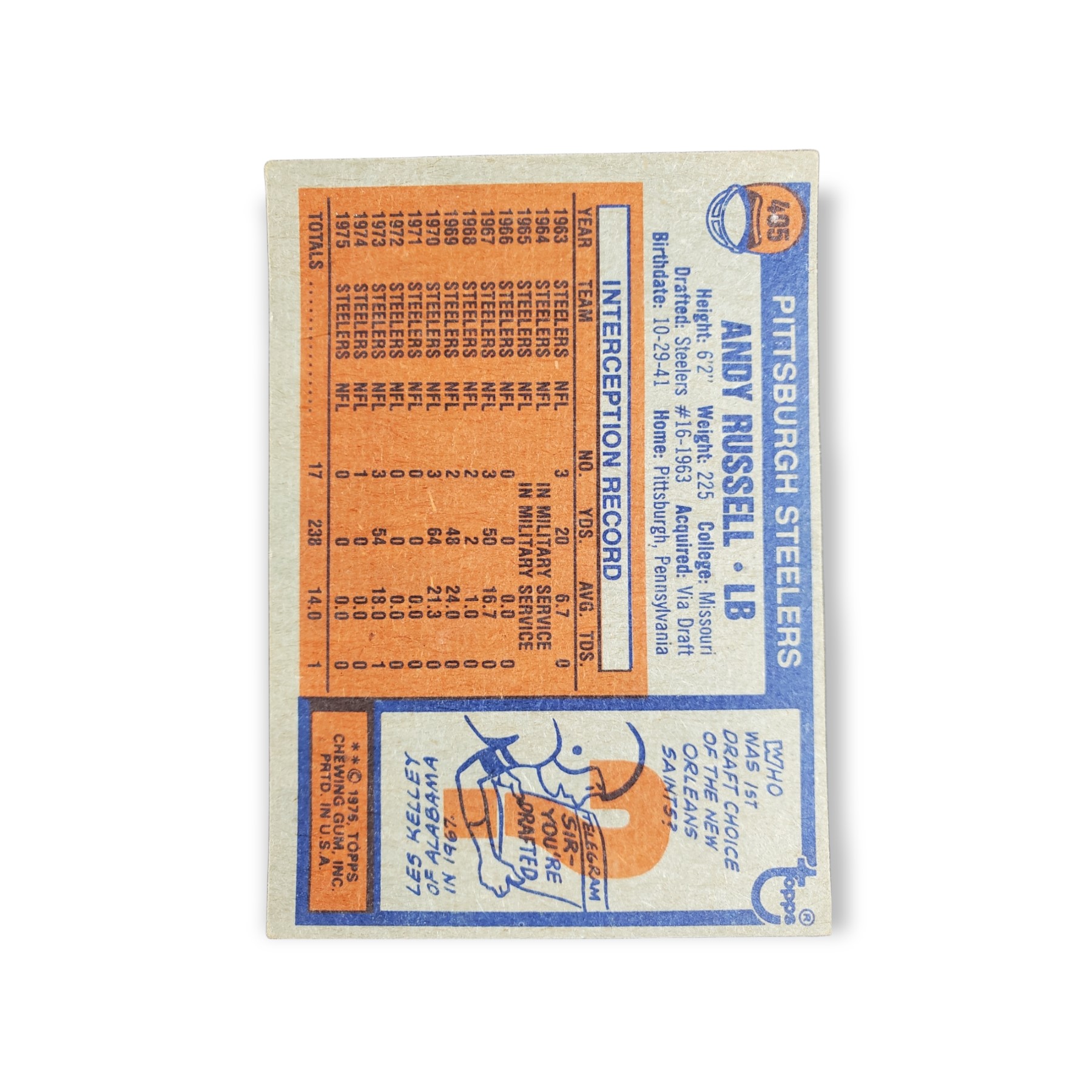 1976 Topps Football Andy Russell Card #405 Pittsburgh Steelers Trading Card