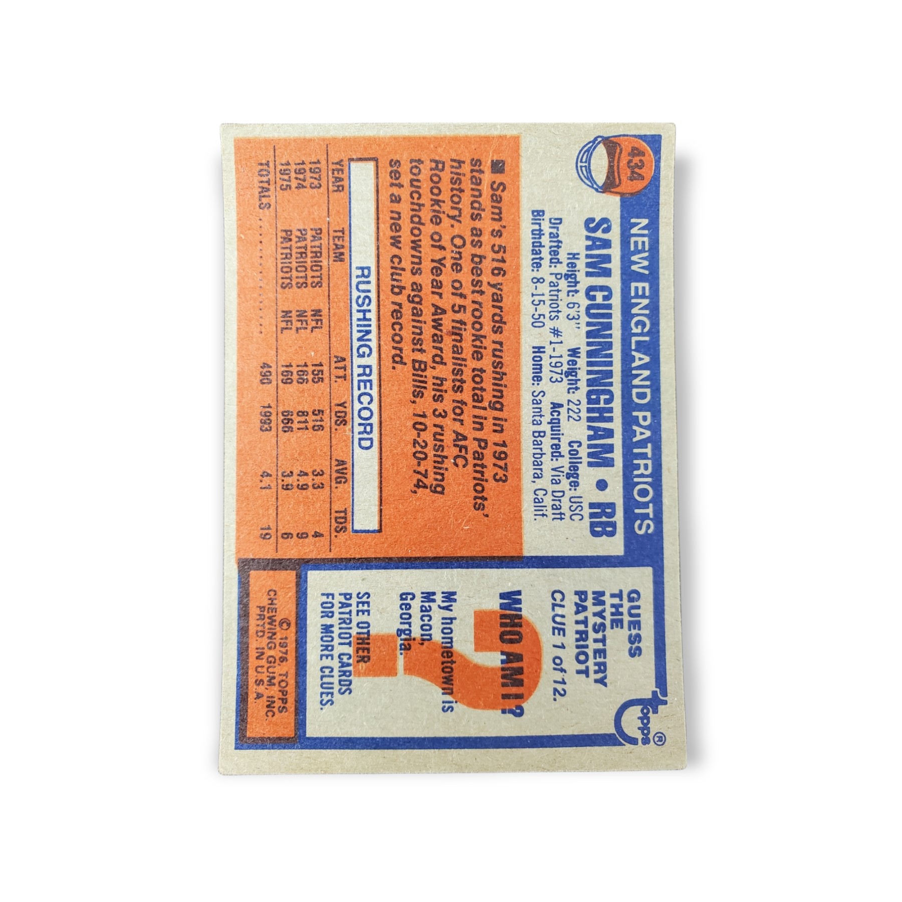 Home Shop Sports Trading Cards Football Cards 1976 Topps Football Sam Cunningham Card #434 New England Patriots Trading Card