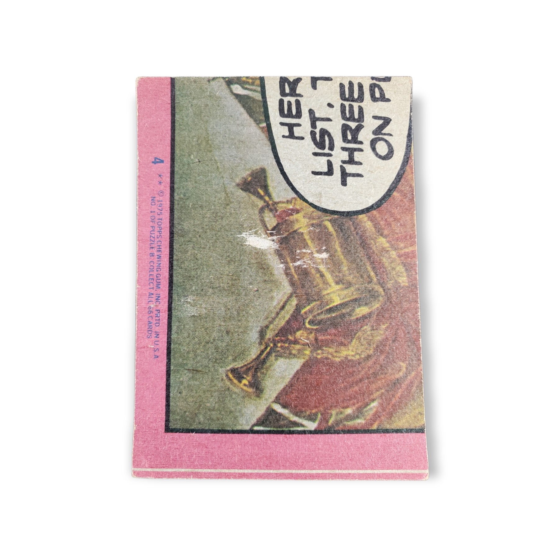 1976 Topps Hysterical History Trading Card #4 The Mayflower Compact The back of the card features a puzzle piece.