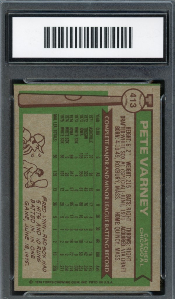 1976 Topps Pete Varney Chicago White Sox Baseball Card #413 – GMA Professional Graded 7 NM