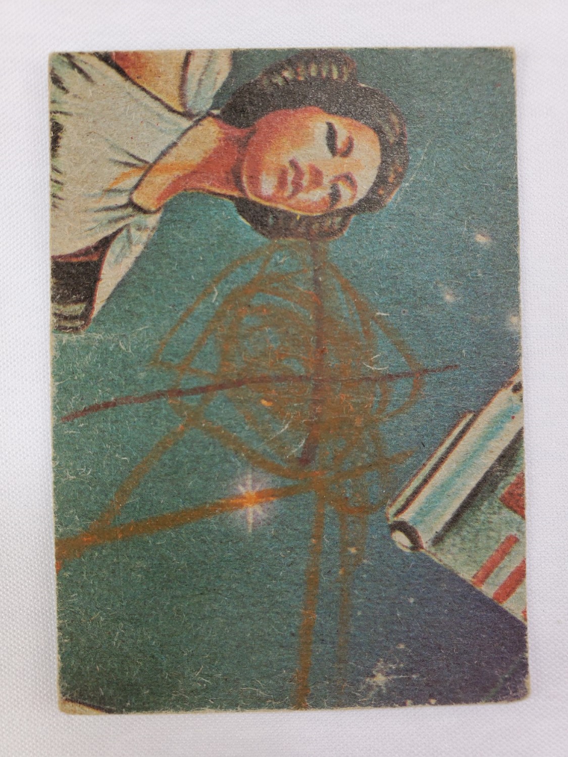 1977 Topps Star Wars Series 1 Trading Card #52 Blue Border – Who will win the final Star War! The back of the card has crayon written over it. The Series 1 set is based on Star Wars: Episode IV A New Hope, and featured stills from the film, promotional photos and behind the scenes photos, all within a blue starfield border. Backs of the cards featured “Story Summary” or “Movie Facts” themes, or included a portion of a larger image that could be pieced together with other cards like a puzzle.