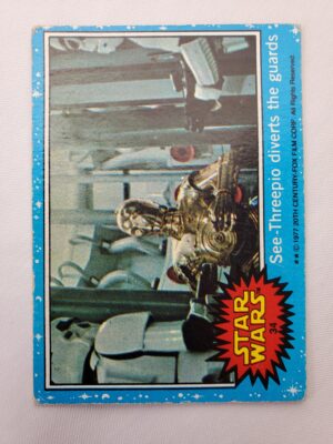1977 Topps Star Wars Blue Series 1 Card #34 See-Threepio diverts the guards $4.97