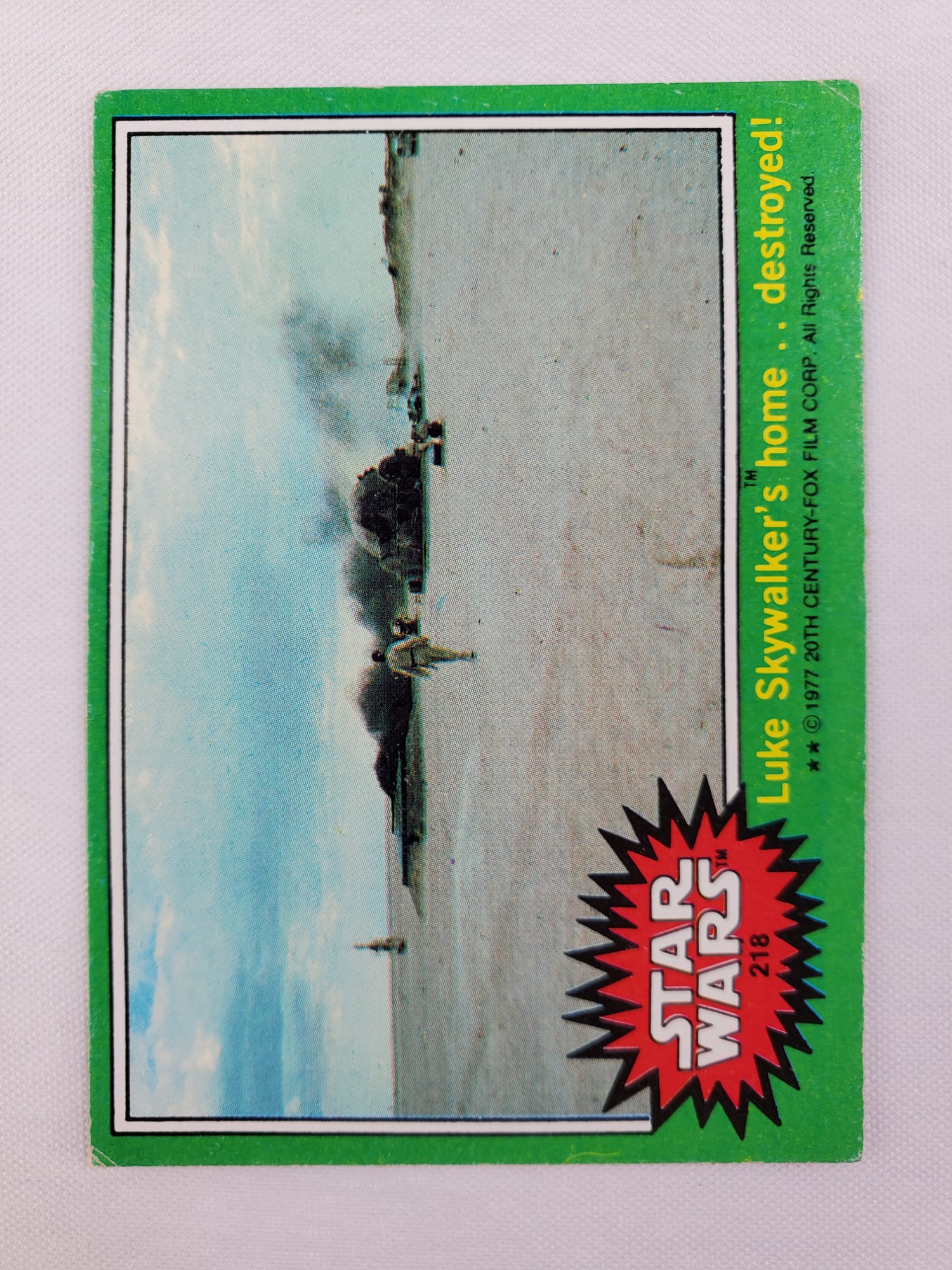 1977 Topps Star Wars Green Series 4 Card #218 Luke Skywalker’s home…destroyed!