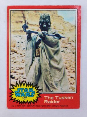 1977 Topps Star Wars Series 2 Trading Card #108 Red Border – Princess Leia observes the battle! The Series 2 set was based on Star Wars: Episode IV A New Hope, and featured stills from the film, promotional photos and behind the scenes photos, all within a red border. Backs of the cards featured “Actor’s Profile” or “Movie Facts” themes, or included a portion of a larger image that could be pieced together with other cards like a puzzle.