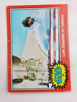 1977 Topps Star Wars Series 2 Trading Card #74 Red Border – Luke Skywalker on Tatooine. The Series 2 set was based on Star Wars: Episode IV A New Hope, and featured stills from the film, promotional photos and behind the scenes photos, all within a red border. Backs of the cards featured “Actor’s Profile” or “Movie Facts” themes, or included a portion of a larger image that could be pieced together with other cards like a puzzle.