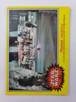 1977 Topps Star Wars Series 3 Trading Card #158 Yellow Border – Rebel victory. The Series 3 set was based on Star Wars: Episode IV A New Hope, and featured stills from the film, promotional photos and behind the scenes photos, all within a yellow border. Backs of the cards featured an “Official Description” theme describing characters or vehicles, or included a portion of a larger image that could be pieced together with other cards like a puzzle.
