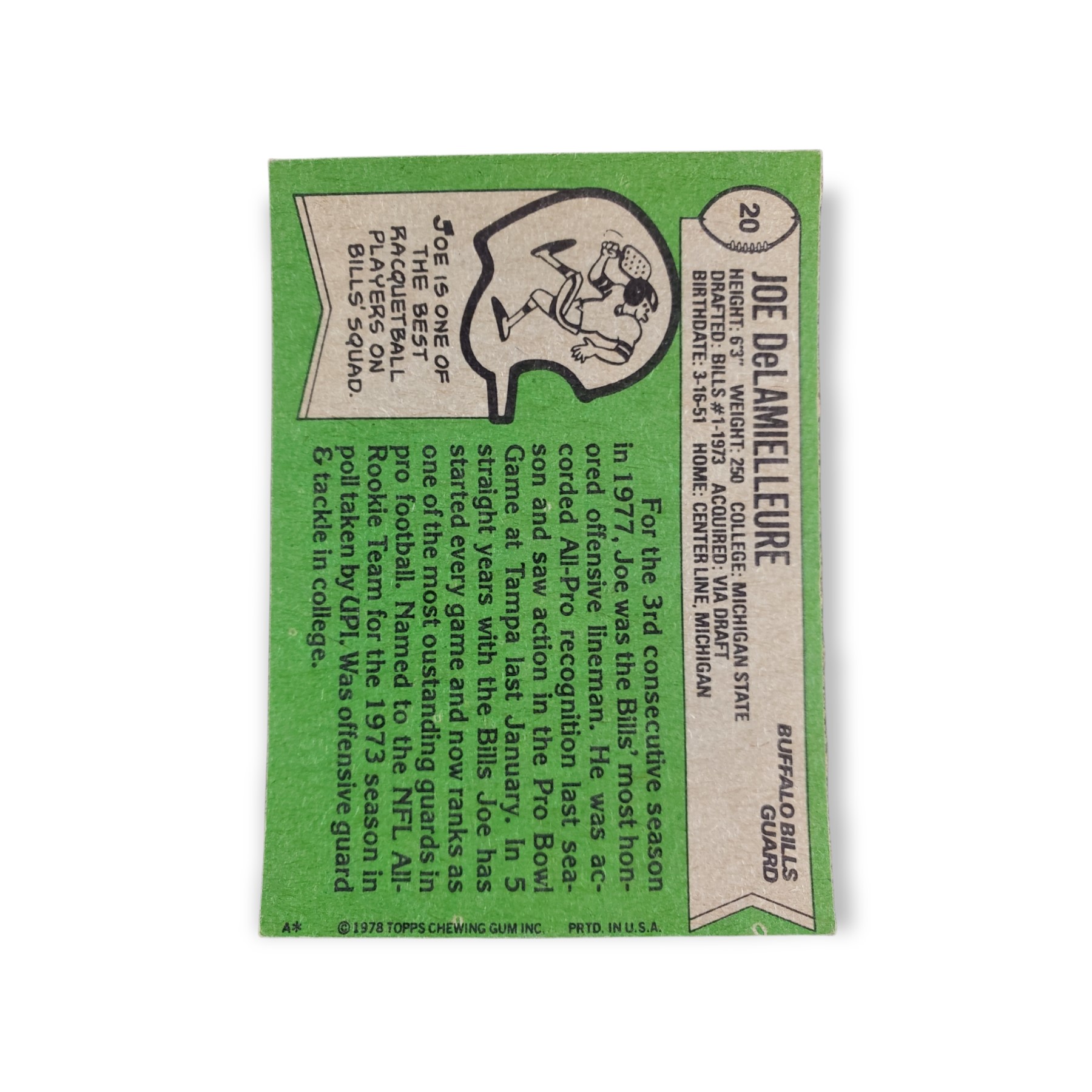 1978 Topps Football Joe Delamielleure Card #20 All-Pro Buffalo Bills Trading Card