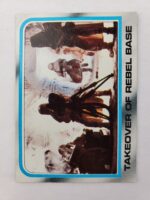 1980 Topps Star Wars: The Empire Strikes Back Series 2 Trading Card #166 – Takeover of Rebel Base. The Empire Strikes Back Series 2 set is based on Star Wars: Episode V The Empire Strikes Back, and features stills from the film, promotional photos, and behind the scenes photos all within a blue and silver border. The first 10 cards are “Starcraft” vehicle profile cards. The “Star Quiz” themed cards display trivia questions on the back and “Movie Facts” cards include production photos with information on the back.