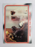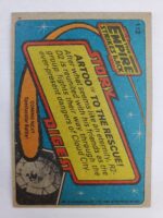 1980 Topps Star Wars: The Empire Strikes Back Series 1 Trading Card #112 – Artoo to the Rescue! The Empire Strikes Back Series 1 set is based on Star Wars: Episode V The Empire Strikes Back, and features stills from the film and promotional photos, all within a red and silver border. The first 10 cards are “Star File” character profile cards. The “Story Digest” themed cards tell the story of the movie on the back, and “Space Paintings” cards feature Ralph McQuarrie concept art on the front and “Movie Facts” on the back.