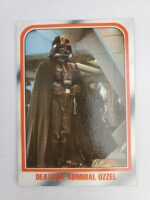 1980 Topps Star Wars: The Empire Strikes Back Series 1 Trading Card #34 – Death of Admiral Ozzel. The Empire Strikes Back Series 1 set is based on Star Wars: Episode V The Empire Strikes Back, and features stills from the film and promotional photos, all within a red and silver border. The first 10 cards are “Star File” character profile cards. The “Story Digest” themed cards tell the story of the movie on the back, and “Space Paintings” cards feature Ralph McQuarrie concept art on the front and “Movie Facts” on the back.