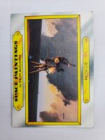 1980 Topps Star Wars: The Empire Strikes Back Series 1 Trading Card #129 – Rescue. The Empire Strikes Back Series 1 set is based on Star Wars: Episode V The Empire Strikes Back, and features stills from the film and promotional photos, all within a red and silver border. The first 10 cards are “Star File” character profile cards. The “Story Digest” themed cards tell the story of the movie on the back, and “Space Paintings” cards feature Ralph McQuarrie concept art on the front and “Movie Facts” on the back.