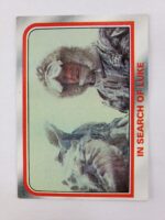 1980 Topps Star Wars: The Empire Strikes Back Series 1 Trading Card #23 – In Search of Luke. The Empire Strikes Back Series 1 set is based on Star Wars: Episode V The Empire Strikes Back, and features stills from the film and promotional photos, all within a red and silver border. The first 10 cards are “Star File” character profile cards. The “Story Digest” themed cards tell the story of the movie on the back, and “Space Paintings” cards feature Ralph McQuarrie concept art on the front and “Movie Facts” on the back.