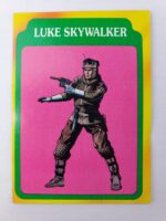 1980 Topps Star Wars: The Empire Strikes Back Series 3 Trading Card #268 – Luke Skywalker. The Empire Strikes Back Series 3 set is based on Star Wars: Episode V The Empire Strikes Back, and features stills from the film, promotional photos, and behind the scenes photos all within a yellow and green border. Most cards have “Star Quotes” on the back with dialogue from both films in the series. “Space Paintings” cards feature concept art by Ralph McQuarrie, and “Movie Facts” cards include production photos on the front and information on the back.
