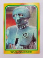 1980 Topps Star Wars: The Empire Strikes Back Series 3 Trading Card #284 – Too-Onebee. The Empire Strikes Back Series 3 set is based on Star Wars: Episode V The Empire Strikes Back, and features stills from the film, promotional photos, and behind the scenes photos all within a yellow and green border. Most cards have “Star Quotes” on the back with dialogue from both films in the series. “Space Paintings” cards feature concept art by Ralph McQuarrie, and “Movie Facts” cards include production photos on the front and information on the back.