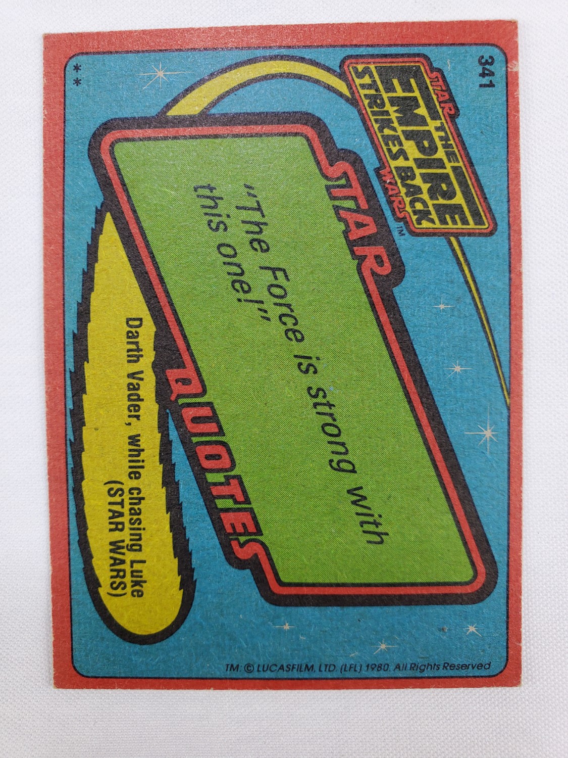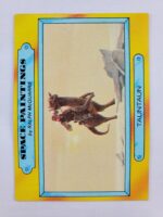 1980 Topps Star Wars: The Empire Strikes Back Series 3 Trading Card #341 – Tauntaun. The Empire Strikes Back Series 3 set is based on Star Wars: Episode V The Empire Strikes Back, and features stills from the film, promotional photos, and behind the scenes photos all within a yellow and green border. Most cards have “Star Quotes” on the back with dialogue from both films in the series. “Space Paintings” cards feature concept art by Ralph McQuarrie, and “Movie Facts” cards include production photos on the front and information on the back.
