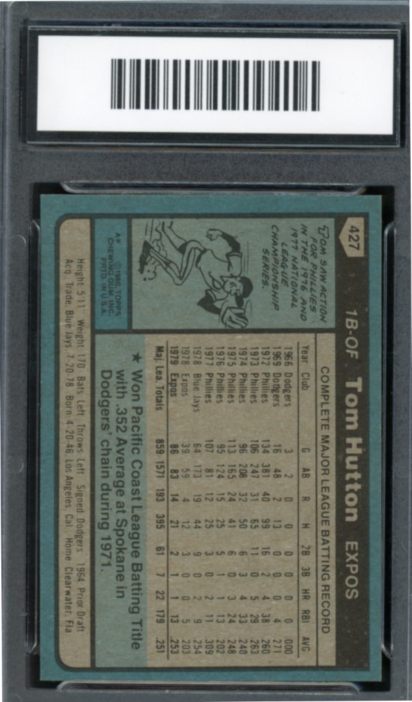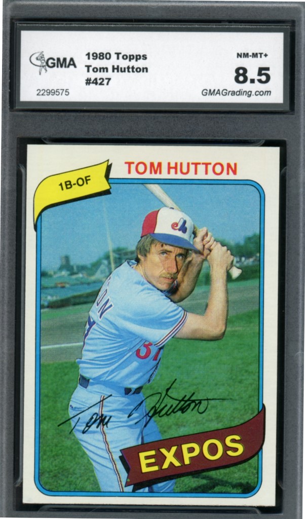 1980 Topps Tom Hutton Montreal Expos Baseball Card #427 – GMA Professional Graded 8.5 NM-MT+