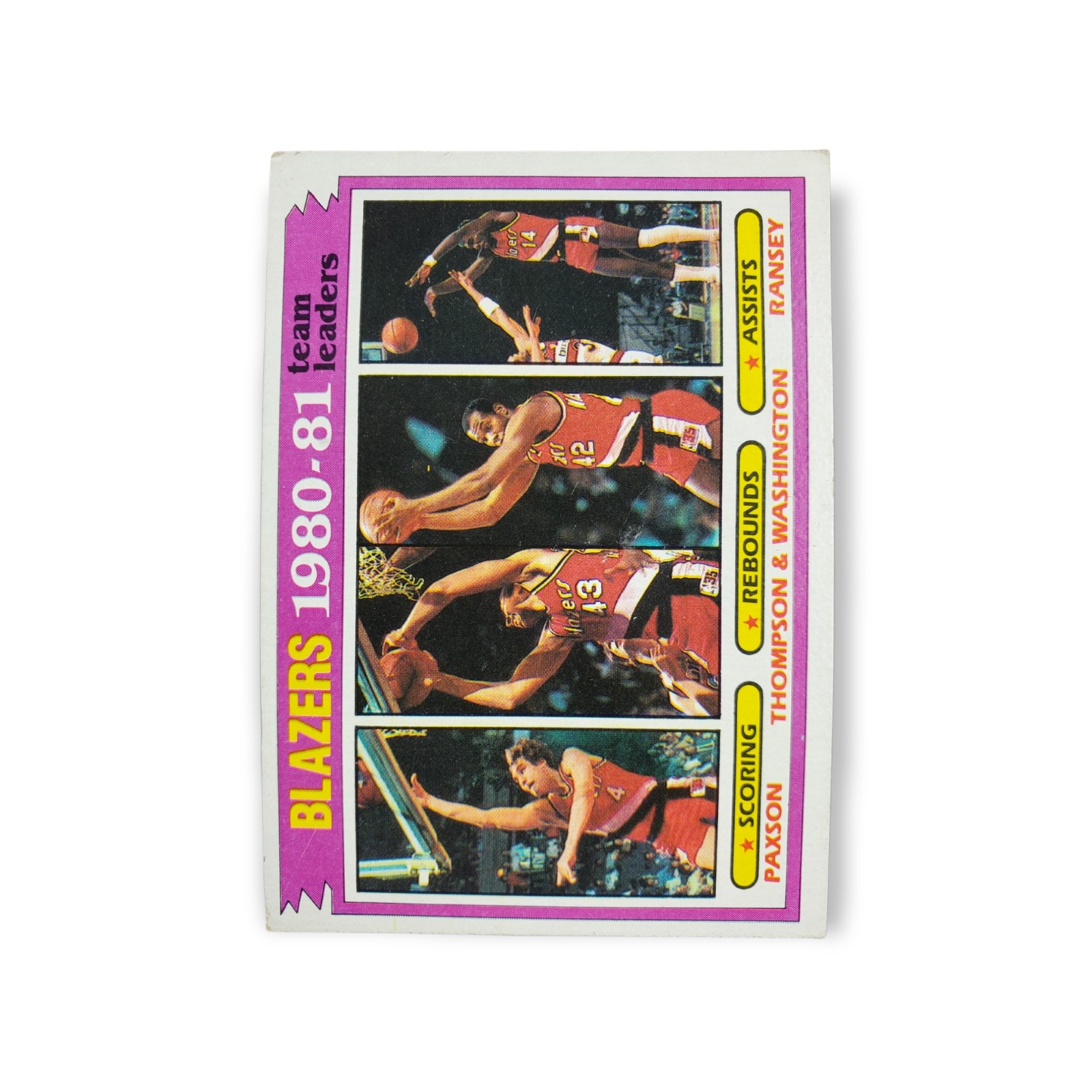 1981-82 Topps Basketball Card #61 Jim Paxson / Mychal Thompson / Kermit Washington / Kelvin Ransey Portland Trail Blazers Team Leader Trading Card