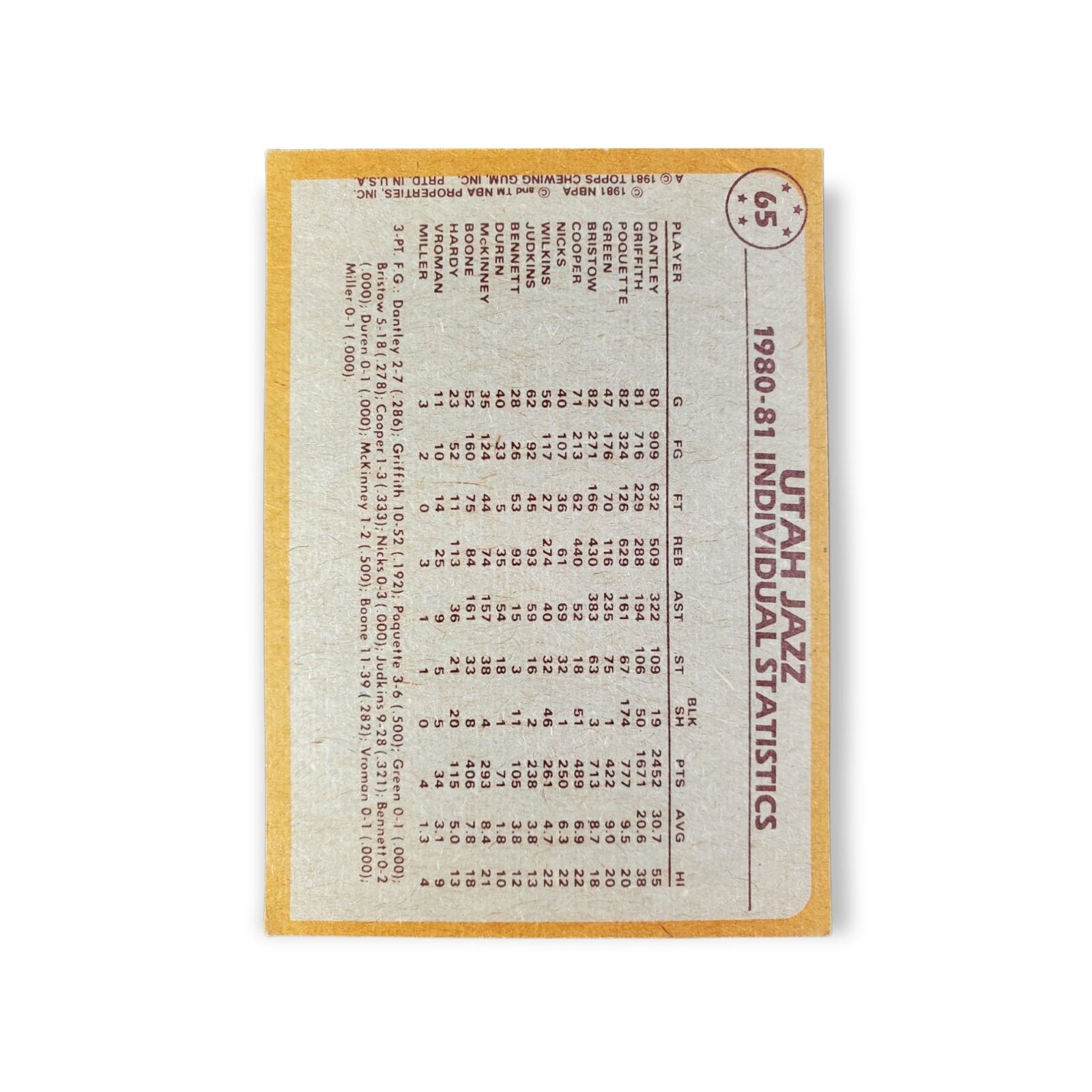 1981-82 Topps Basketball Card #65 Adrian Dantley / Ben Poquette / Allan Bristow Utah Jazz Team Leader Trading Card
